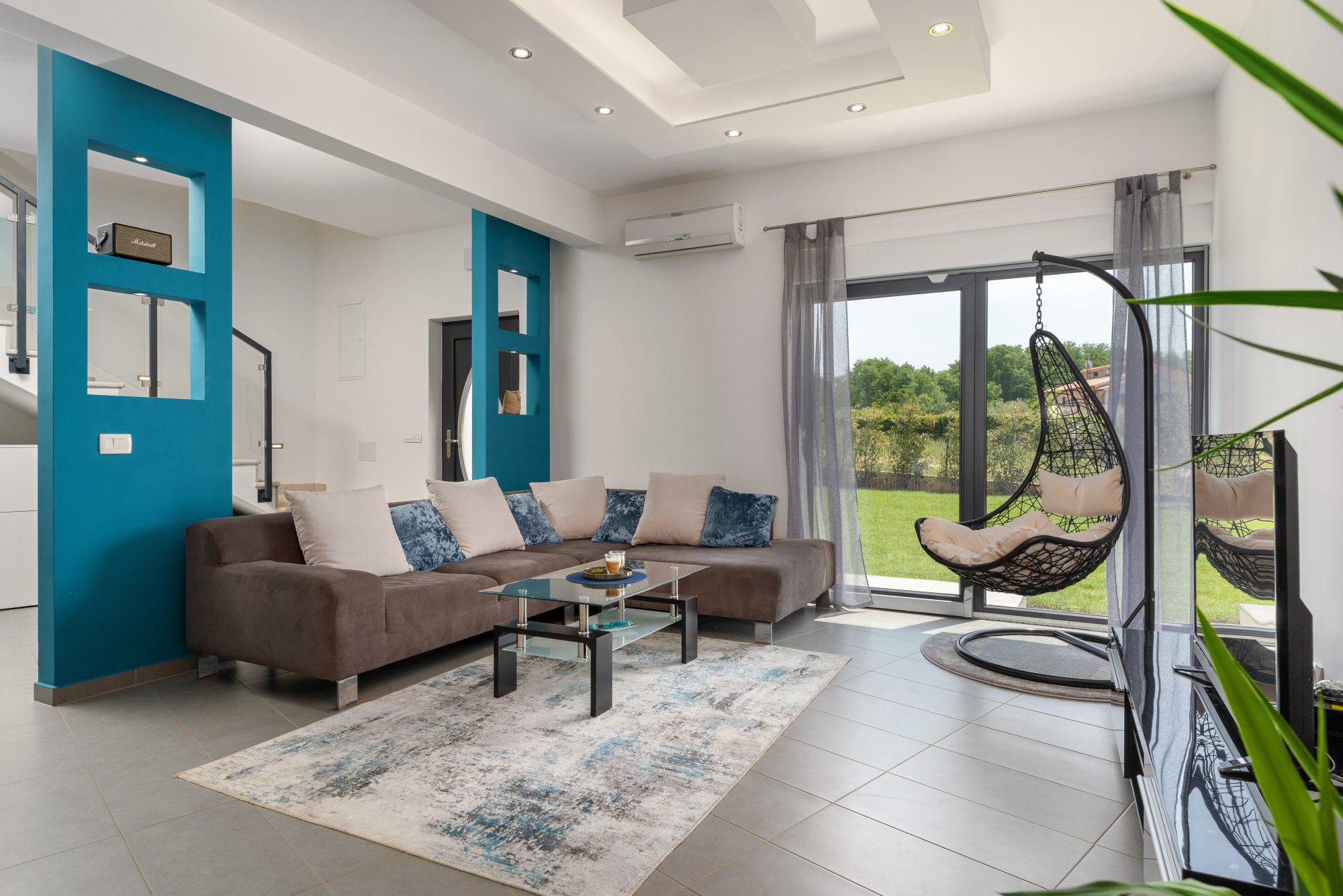 Villa is tucked in the hilltop village Kaštelir, just 10 km north from Poreč, surrounded by rich Mediterranean vegetation such as olive groves, vineyards and fields. The closest beach – Lanterna is just 20 minutes drive from the villa.
